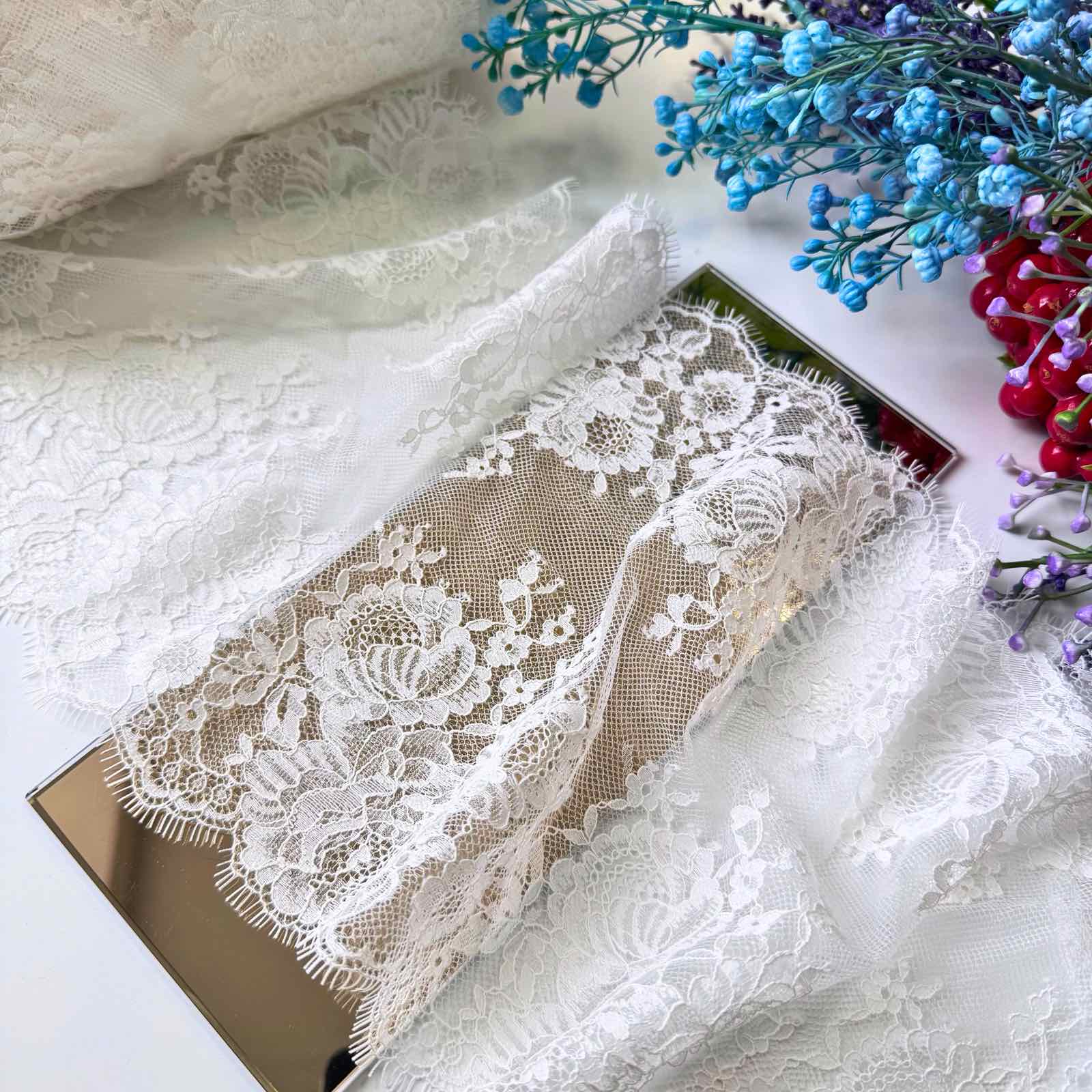 Завдяки симетричному фестону, мереживо відмінно підходить для обробки країв, надаючи виробам завершеності та бездоганного вигляду без втрати форми.