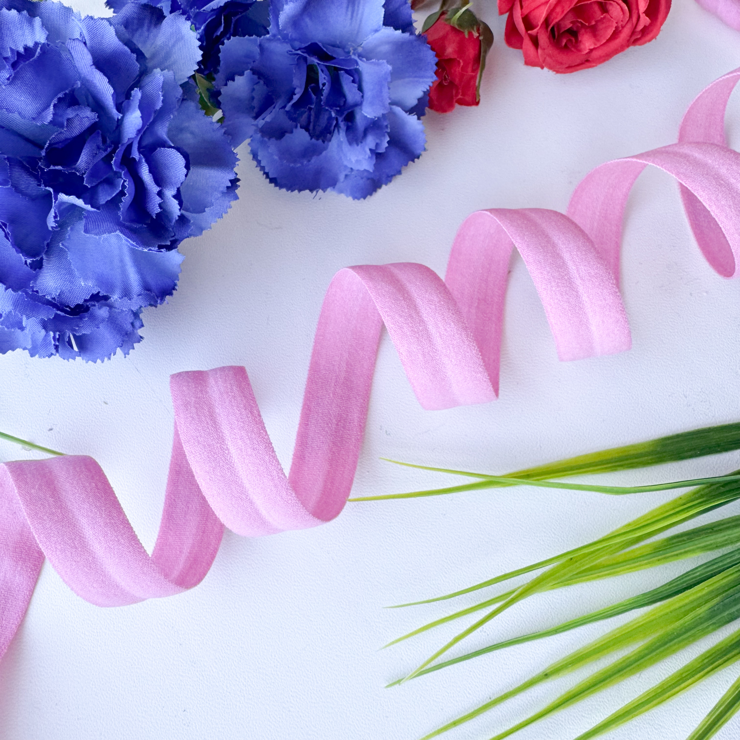 Бейка стрейч, резинка-пополамка, 15 мм, розовый, 3555ТР