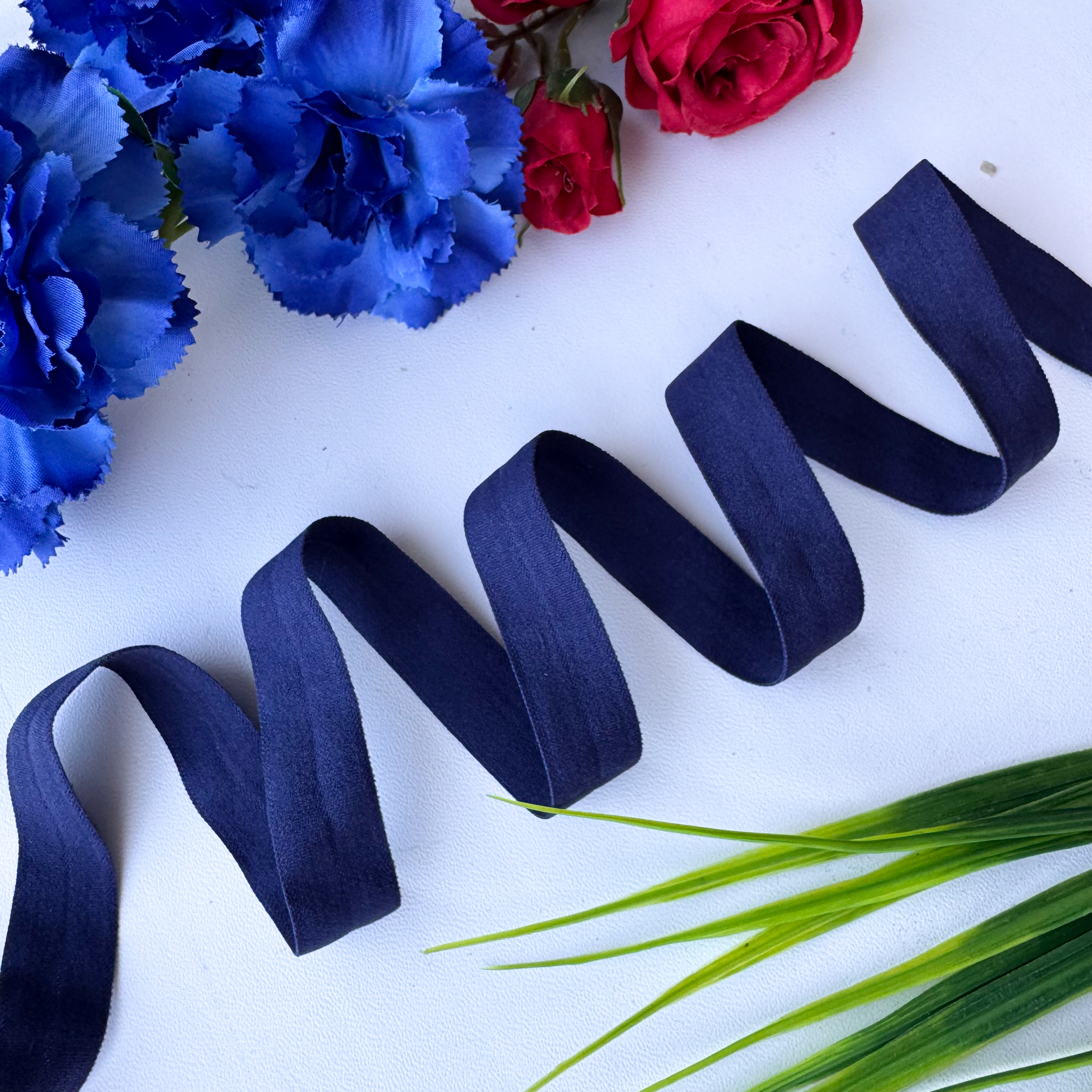Бейка стрейч, резинка-пополамка, 15 мм, синий темный, 3579ТР