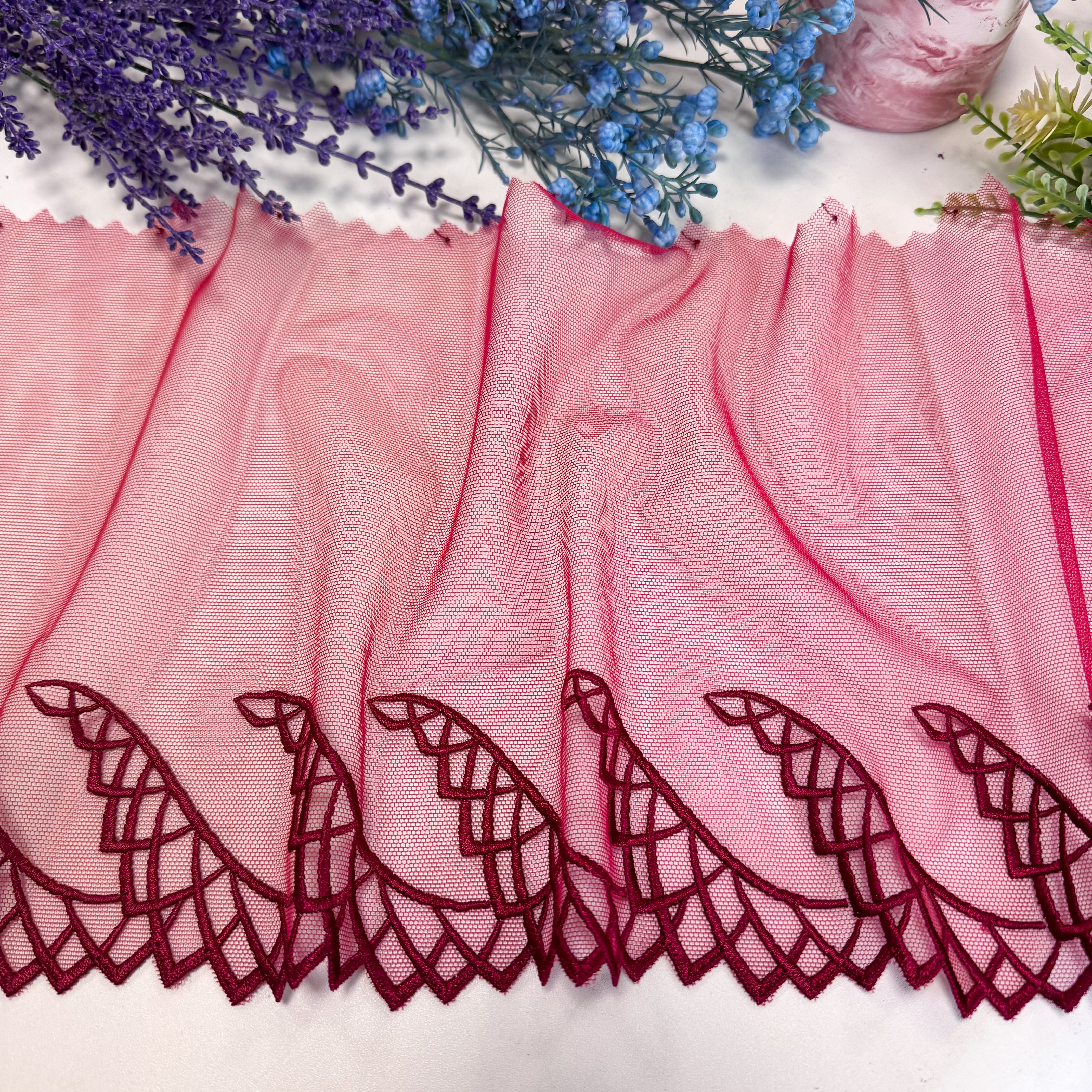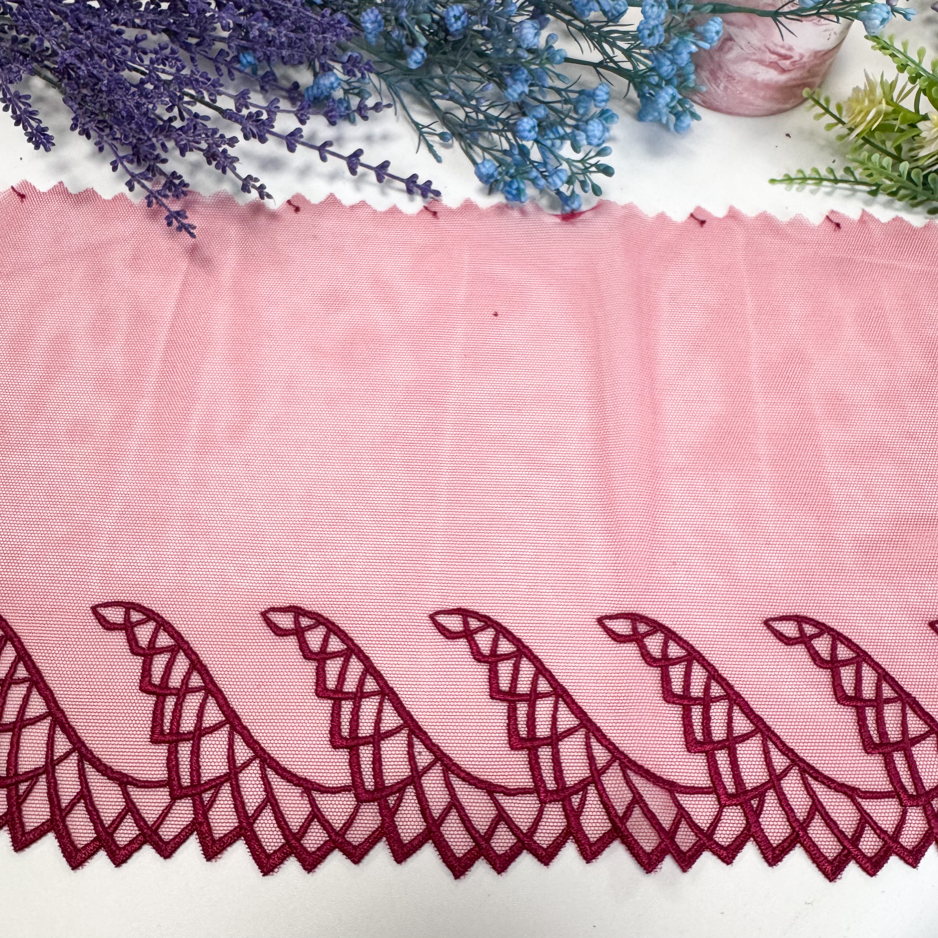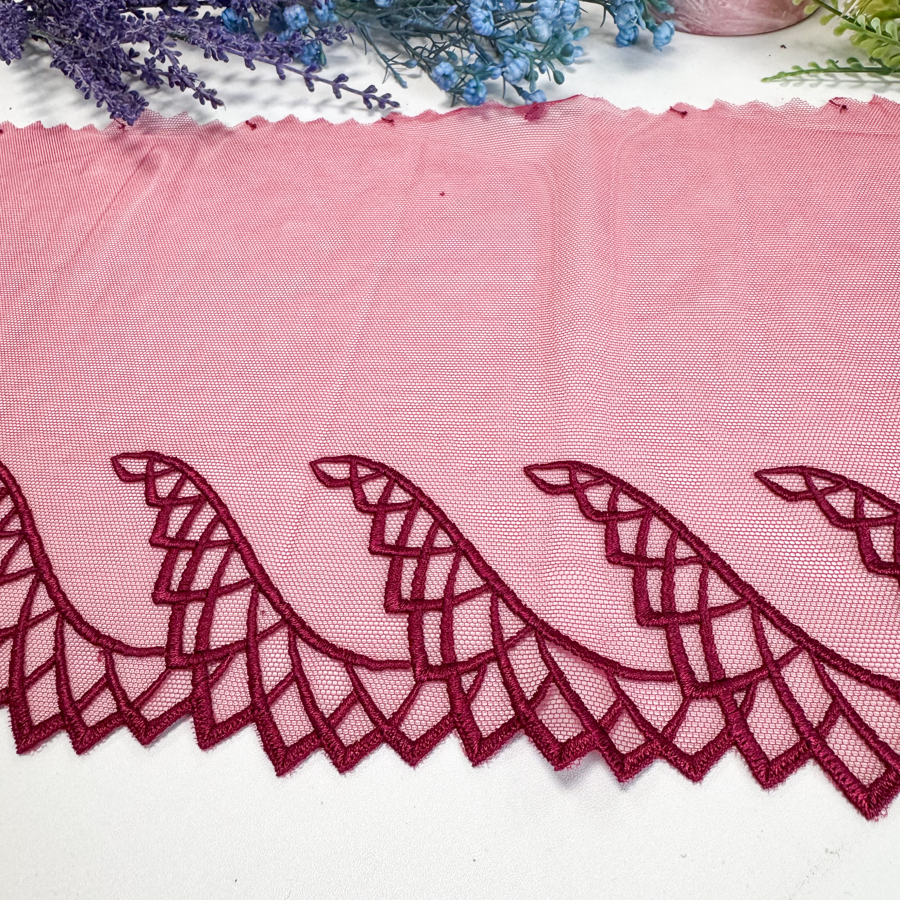 Кружево не стрейч вышивка на сетке, бордовое, шир. 23 см, арт. 1949К