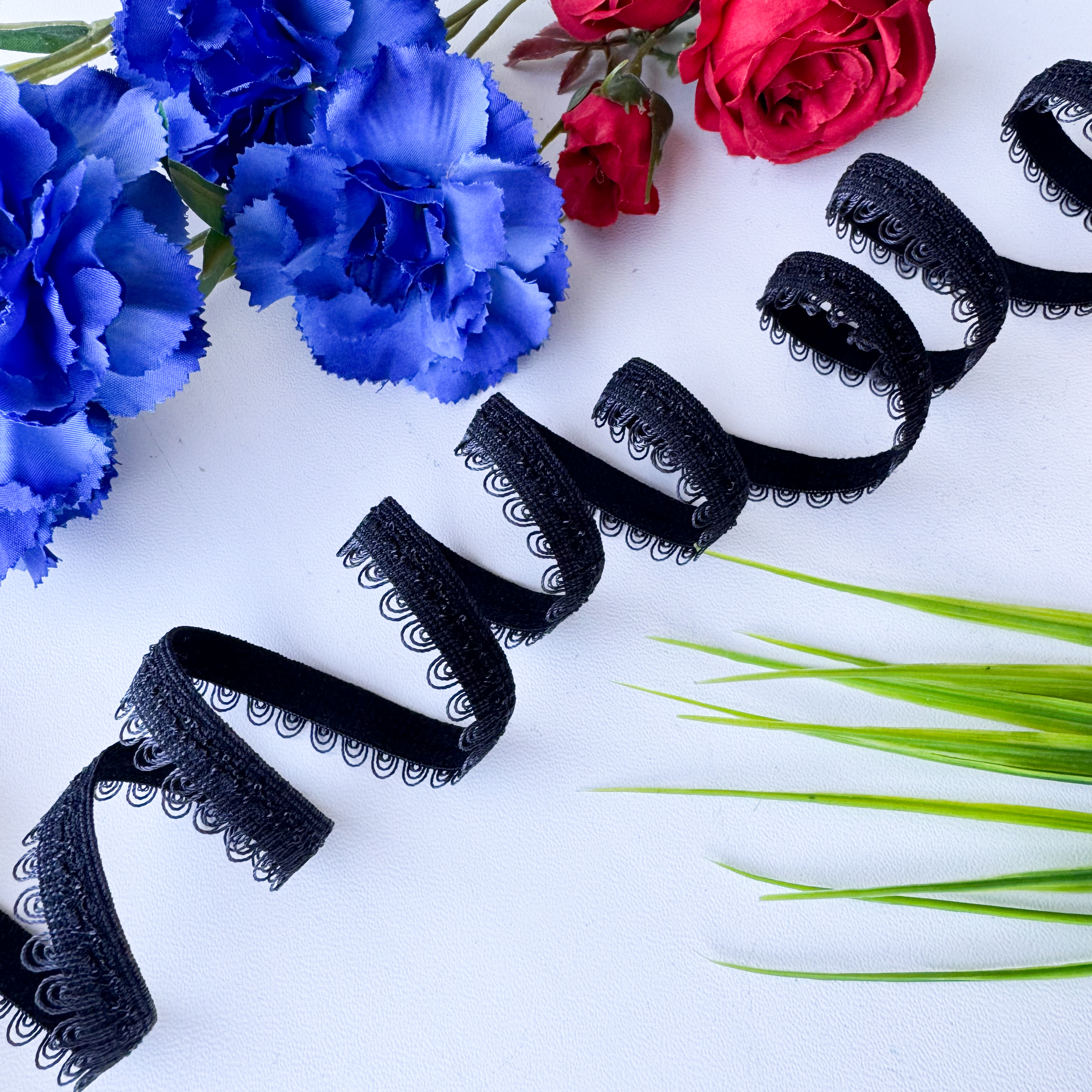 Отделочная резинка стрейч, 8 мм, черный 3603ТР